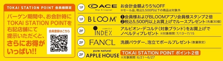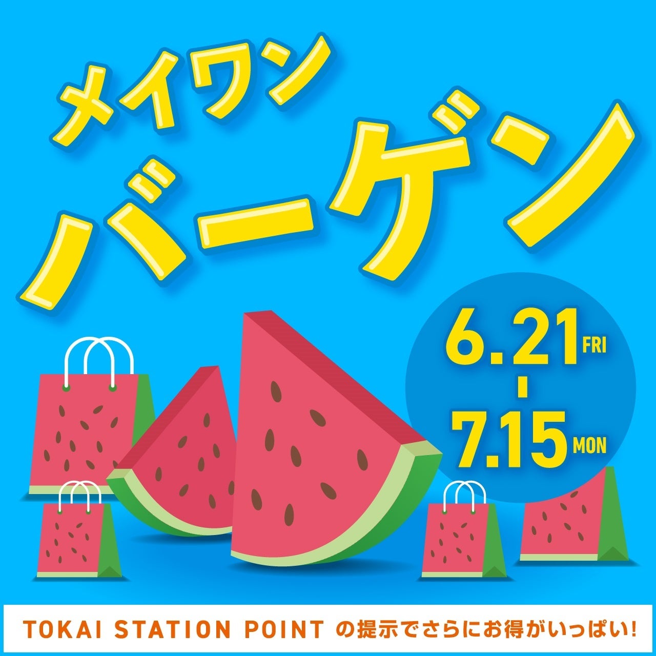 メイワンバーゲン期間中、対象店舗でTOKAI STATION POINTを提示いただくと、さらにお得!