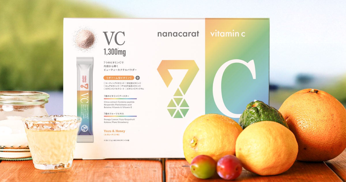 7種類のビタミンCを独自にブレンドした粉末タイプの高吸収・高持続型ビタミンCサプリメント。リポソーム型やアセロラ由来などのビタミンCに加え、ヘスペリジンやビタミンEなど7種のブースト成分、福岡県産あまおうなど果実由来の美容成分も配合。1杯で1,300mgのビタミンCを手軽に補給でき、美容や免疫ケア、疲労回復をサポートします。続けやすい「ゆず&はちみつ味」で、水や炭酸に溶かすだけの簡単摂取。体の内側から輝きを引き出す、次世代型ビタミンCドリンクです。