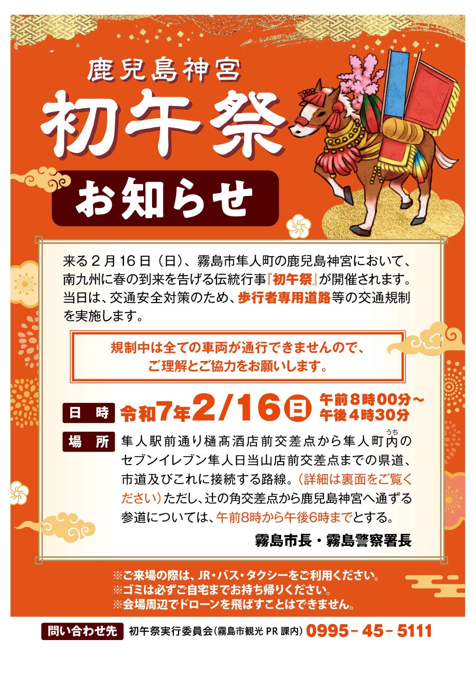 ホームページ:https://www.city-kirishima.jp/kirikan/kanko/matsuri/haru.html#hatsuuma