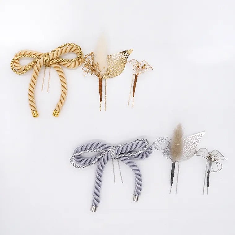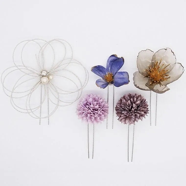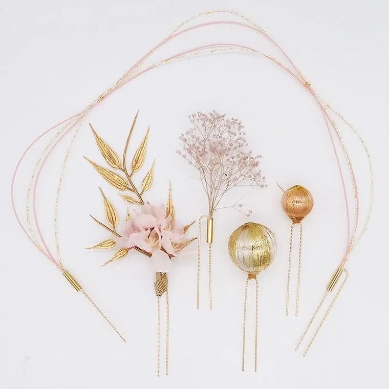 ハレの日アクセサリーは水引きやドライフラワーなどのU字ピンセットになっており、これひとつで本格的なヘアアレンジが完成します。お手持ちのヘアーアクセサリーと自由に組み合わせても楽しめる万能なアイテムです。七五三や初詣などお子様のヘアアレンジにも使えます!またボブやショートヘアの方も使いやすいクリップタイプもございます。