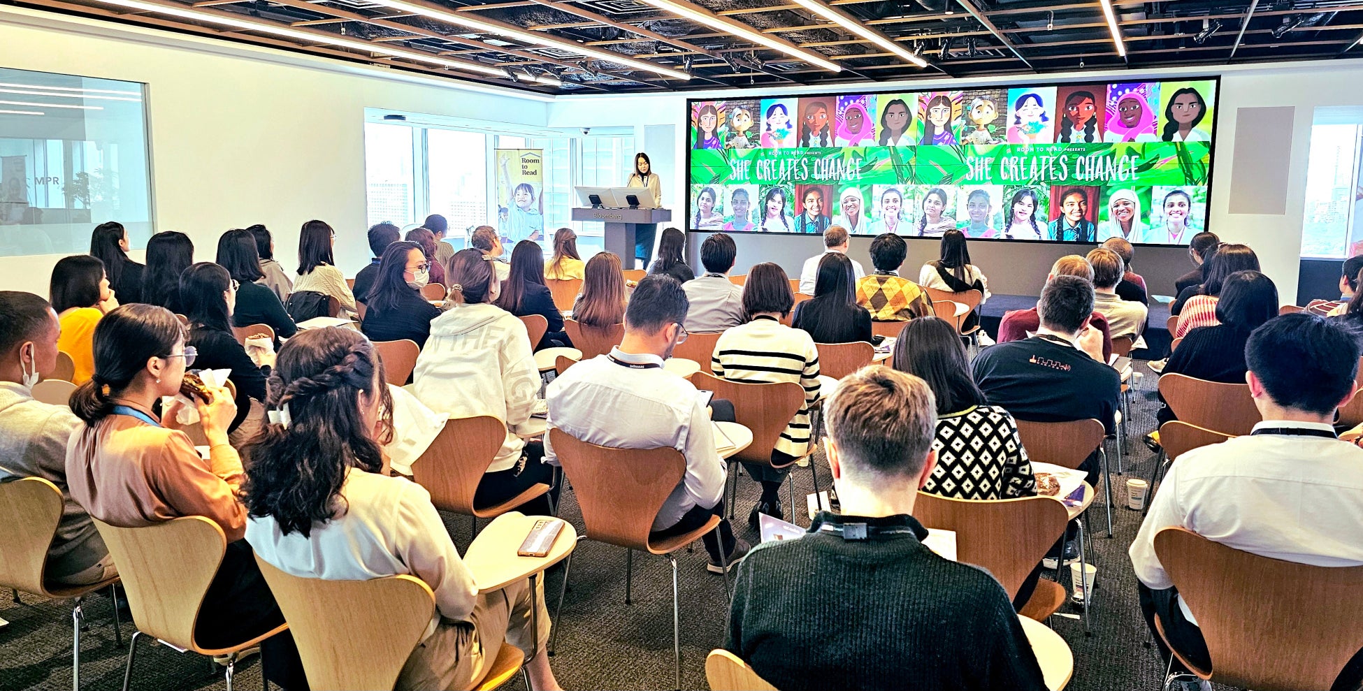 3月7日(木)12:00~13:00、ルーム・トゥ・リードは「国際女性デー」を記念し、ブルームバーグにて、ランチ&ラーン*の形で講演会および「She Creates Change(以下、少女達が未来を変えていく)」の上映会を開催しました。