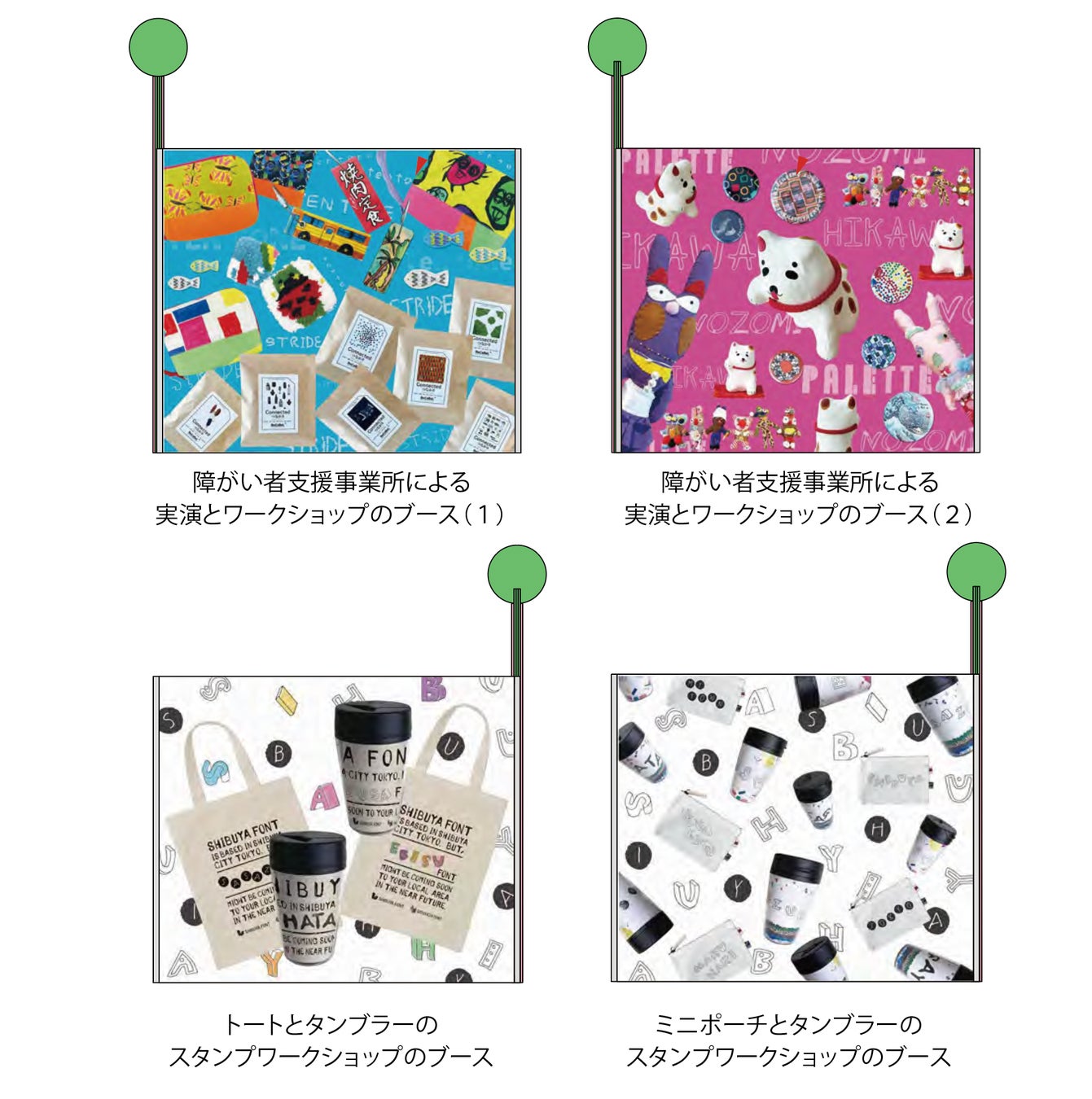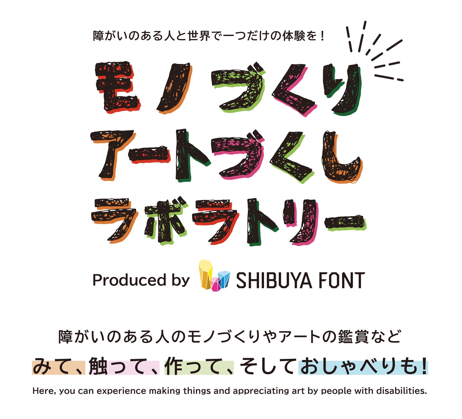 シブヤフォントに参加している渋谷区内の障がい者支援事業所「工房ぱれっと」「TEN TONE」「ストライドクラブ」「ワークセンターひかわ」によるモノづくり体験、モノづくり実演を開催いたします。また、シブヤフォント認定アートファシリテーターたちによる対話型アート思考の体験会を開催いたします。