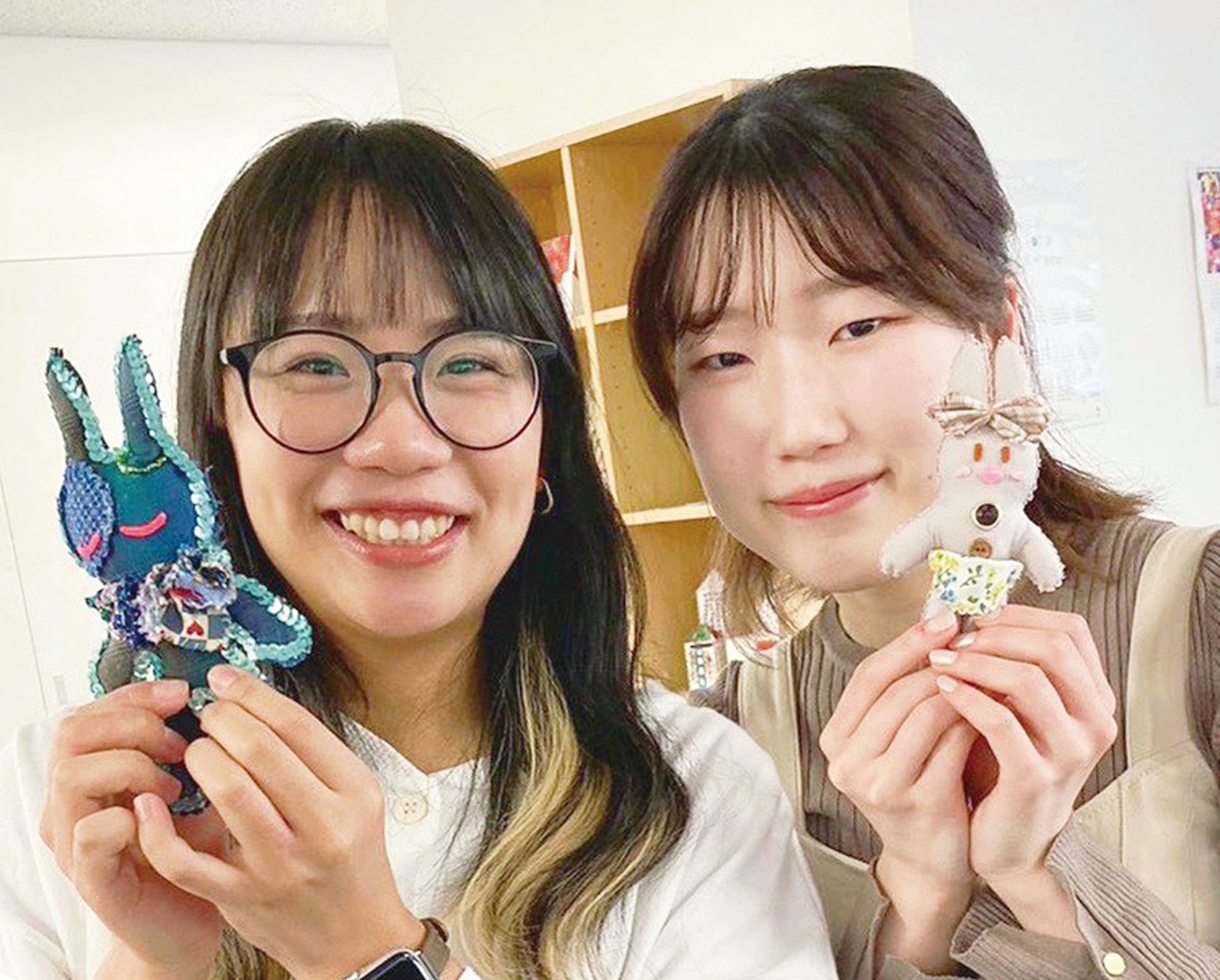 (*)「らぶらび」は、不要になった布やボタン、ビーズなどを縫ったり、貼ったり、巻いたりして制作するぬいぐるみです。障がいのあるアーティストたちが、一点一点、アレンジを変えて、世界で一つだけのぬいぐるみとして、工房ぱれっとで制作・販売されています。