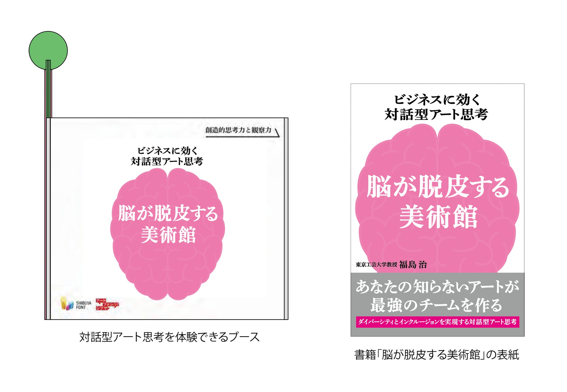 シブヤフォントが取り組む対話型アート思考が紹介された書籍「脳が脱皮する美術館(*)」の表紙デザインと連動させたブースデザインで、新たな発想が生まれるマインド(脳が脱皮する)を醸成します。設置する2つのブースは「創造的思考力と観察力」と「チームビルディングと傾聴力」の2種類のプログラムがそれぞれ体験できるようにしています。また本プログラムのファシリテーションは、シブヤフォント認定アートファシリテーターと書籍「脳が脱皮する美術館」の著者である東京工芸大学 名誉教授 福島治氏が実施いたします。