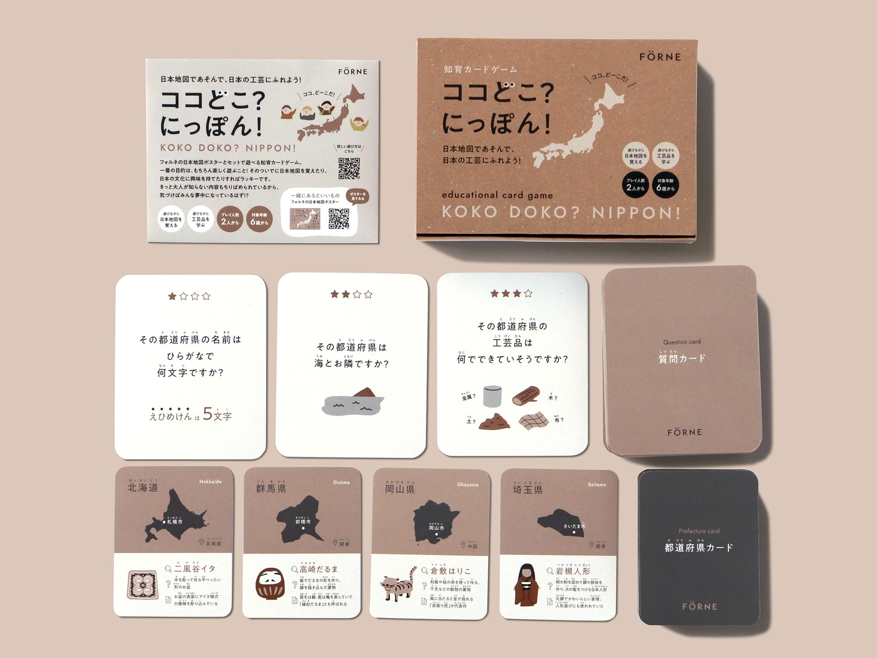「いつも、特別」をコンセプトに、おしゃれ感度の高い大人と子どもに向けたデザイン知育雑貨を提案し、子育て世代を中心に多くの支持を集めているフォルネ。ゲームクリエイターユニット・NANAWARIとコラボした知育カードゲーム「ココどこ?にっぽん!」が新登場です。