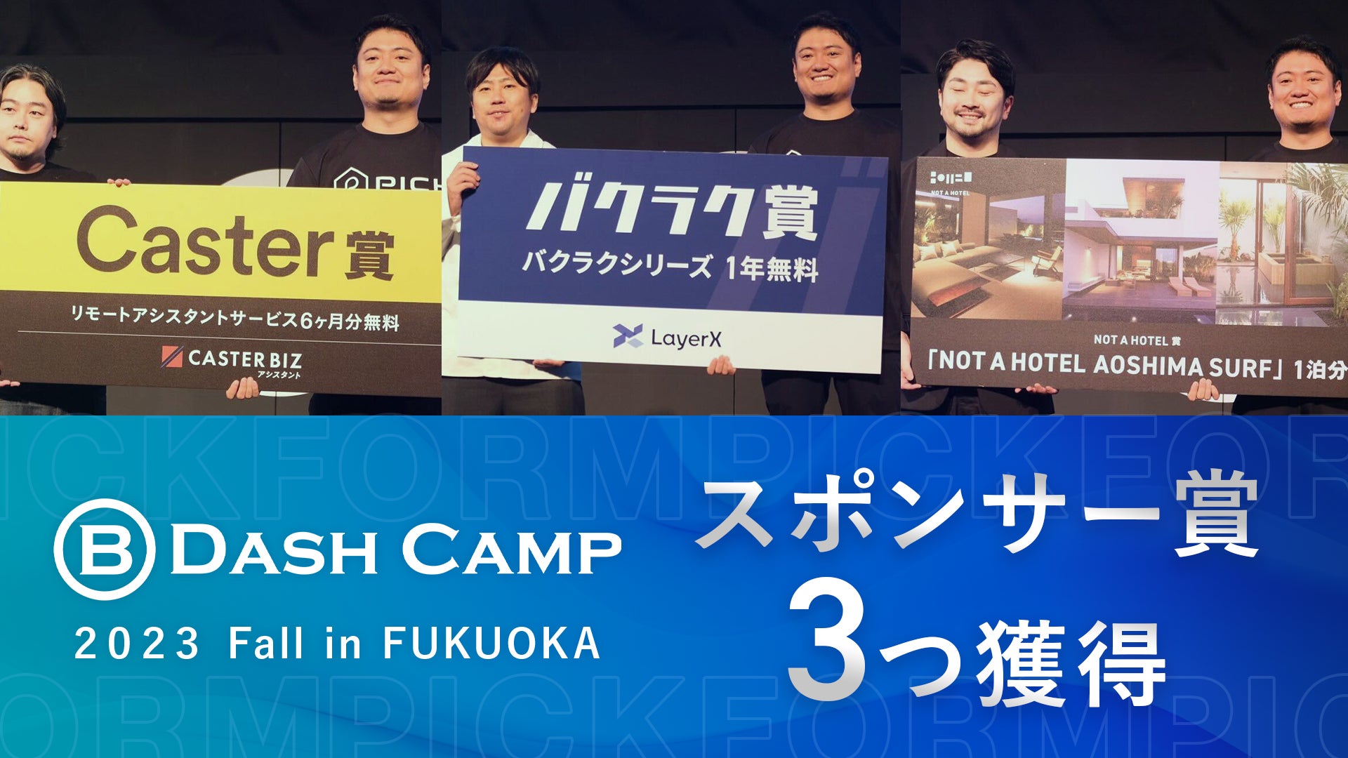 不動産/建築テックのPICK、ピッチイベント「B Dash Camp 2023 Fall in Fukuoka」の「Pitch Arena」にてスポンサー賞3つ獲得!