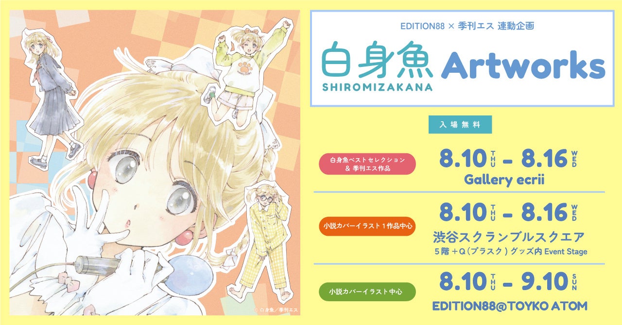 【緊急告知】 8月10日、『けいおん!』アニメーター堀口悠紀子が別名義『白身魚』として発表するイラストの企画展、EDITION88×季刊エス 連動企画「白身魚 Artworks」が3か所同時スタート!