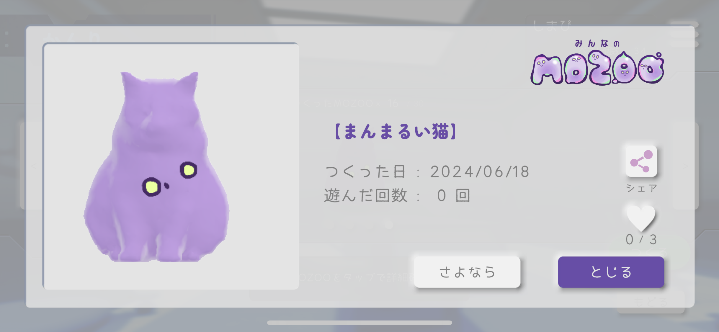 みんなのMOZOOは、最先端の3Dモデル生成AIの技術デモを兼ねたゲームのため、期間限定公開となります。公開期間は未定で、予告なく終了する可能性がございます。