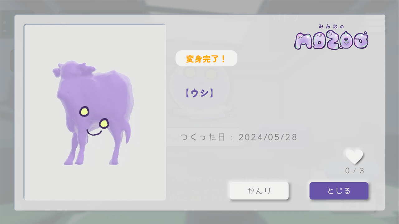 みんなのMOZOOは、株式会社Polyscapeによる、最先端の3Dモデル生成AIの技術デモを兼ねた短編ゲームです。