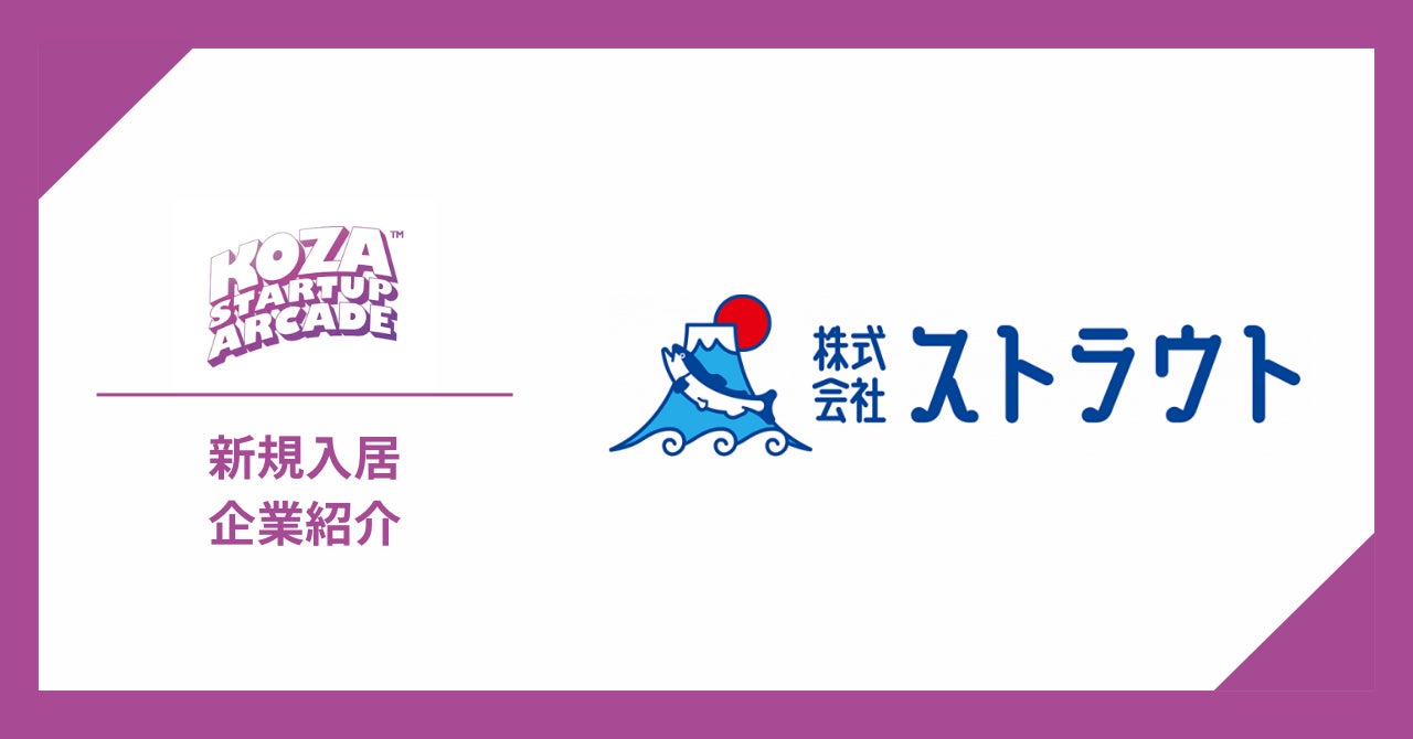 株式会社ストラウト様のKoza Startup Arcadeへのご入居を心より歓迎いたします。