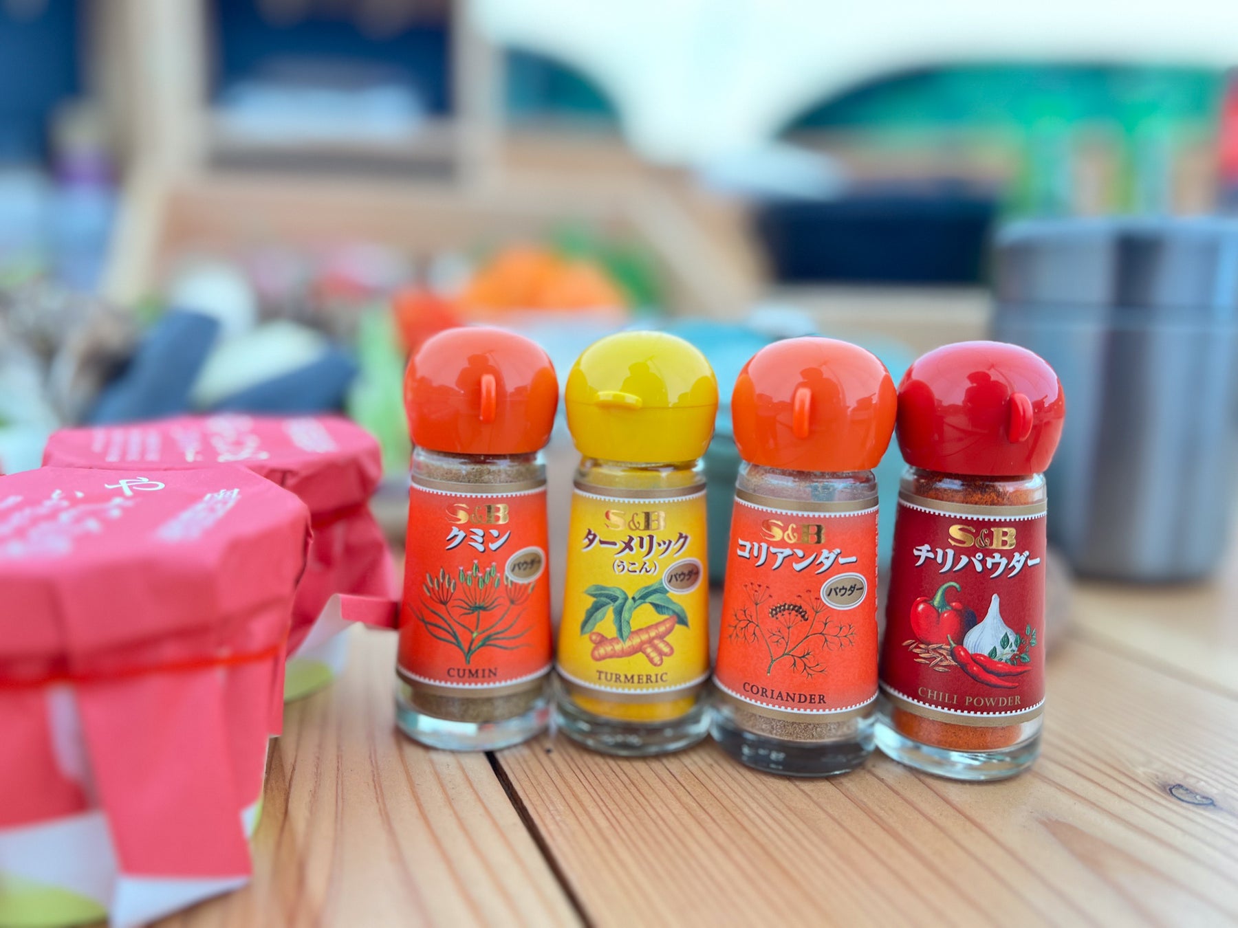 2日目の夕食にはアウトドアの定番!自分で作るオリジナルスパイスカレー。