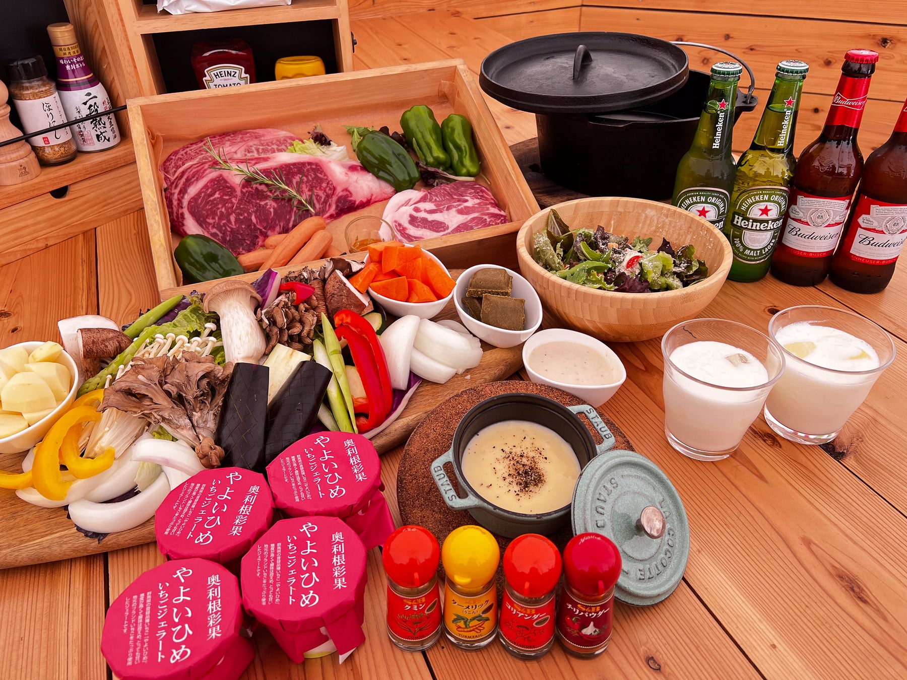 1日目の夕食は、お客様自身がシェフになって大型鉄板で焼き上げるグリルディナー。