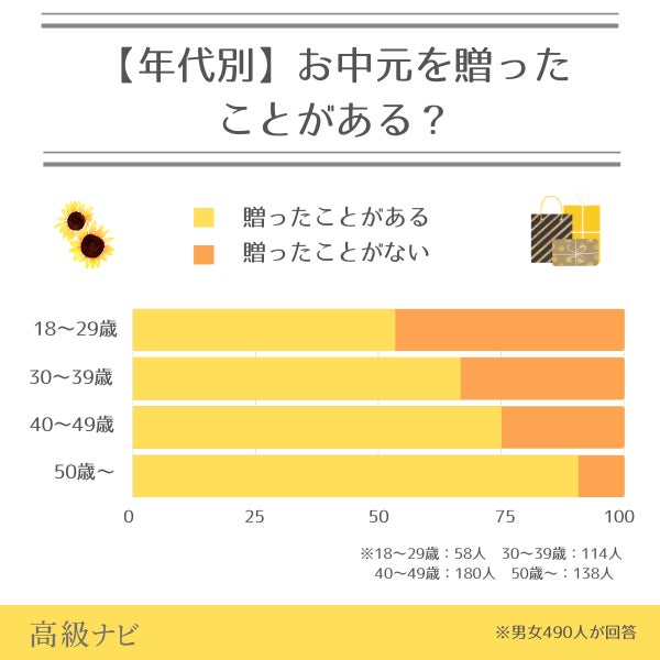 そこで「高級ナビ」編集部では、男女490人に「お中元を贈った経験」や「お中元の予算」などに関してのアンケート調査を実施。その結果「お中元文化」についての本音が判明しました。