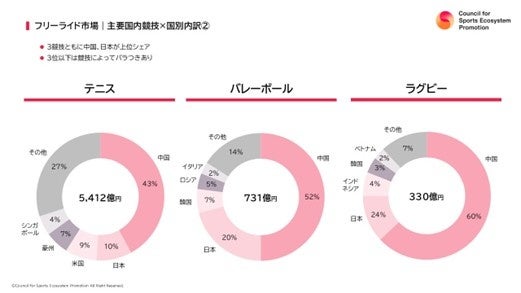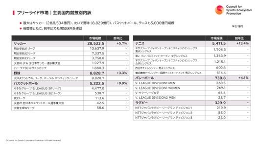 日本違法越境市場及びフリーライド市場の規模の詳細は以下を、その他競技別の市場規模内訳等は最下部の図をご参照ください。