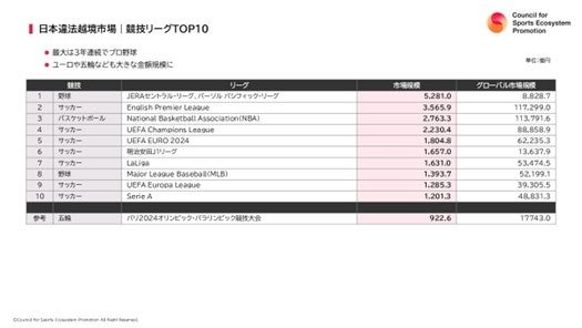 (2)賭けの対象となった全世界のスポーツの競技リーグTOP10(2024年)