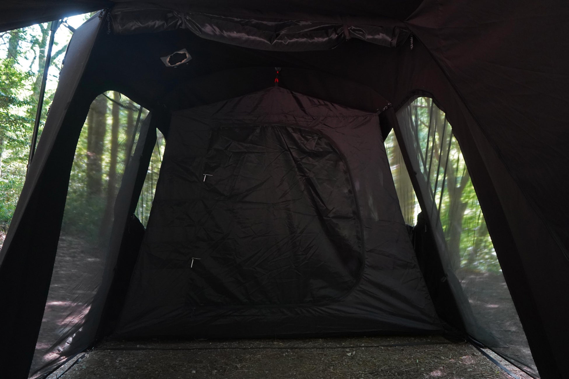 オプションである吊り下げ式のインナーテントを使えば2ルーム構造にでき、リビングスペースと寝室をしっかりと分け、快適なキャンプ体験が可能です。