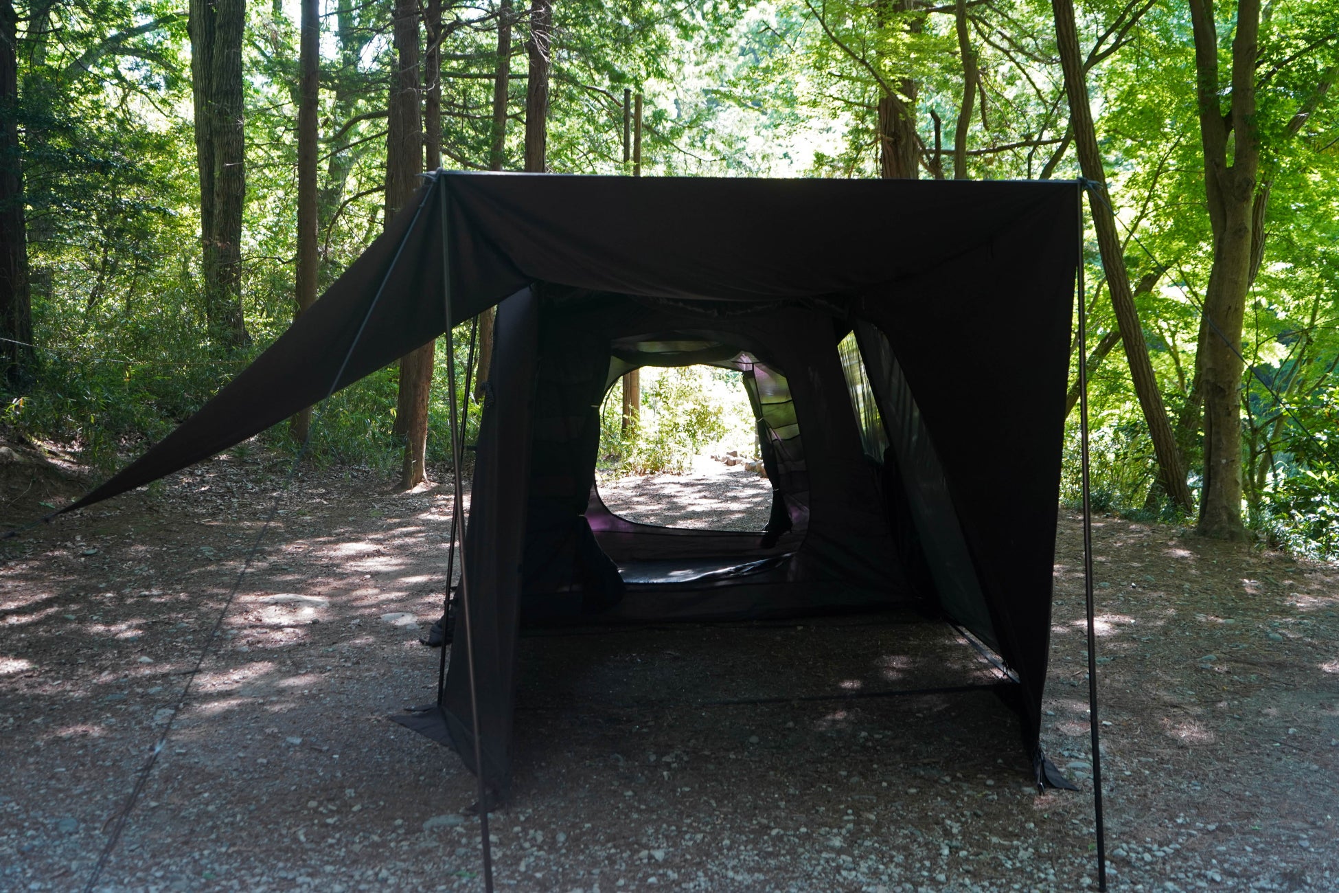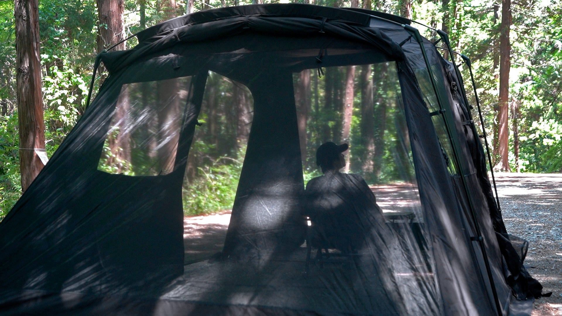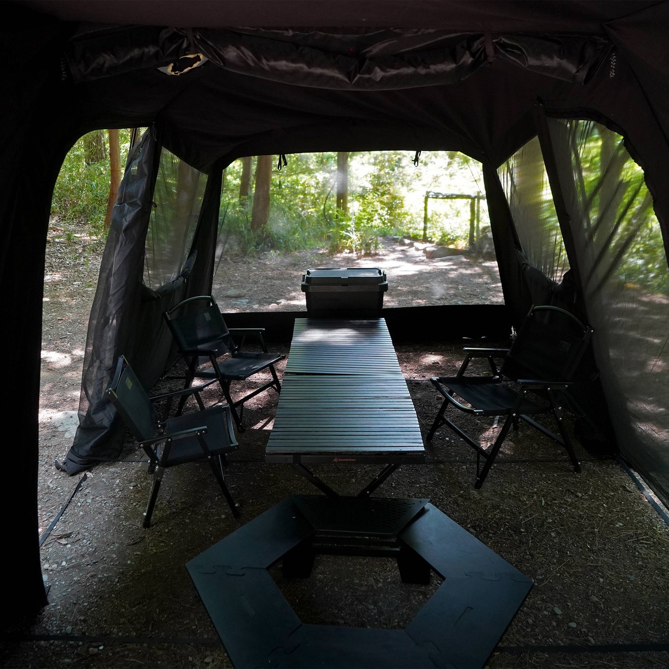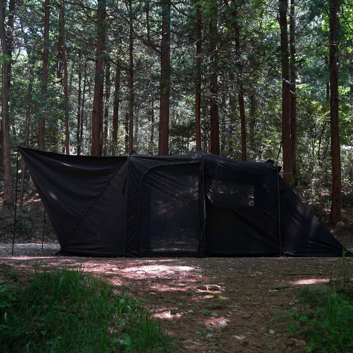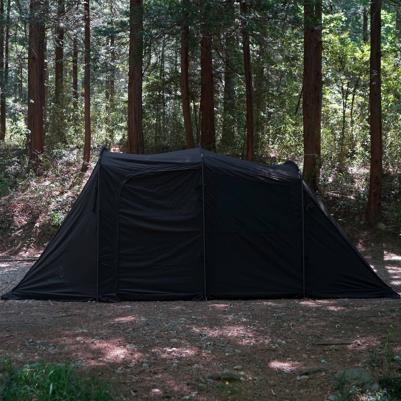 6面がメッシュ窓にできるTC素材のブラック2ルームテントがMakuakeにてクラウドファンディングを開始!