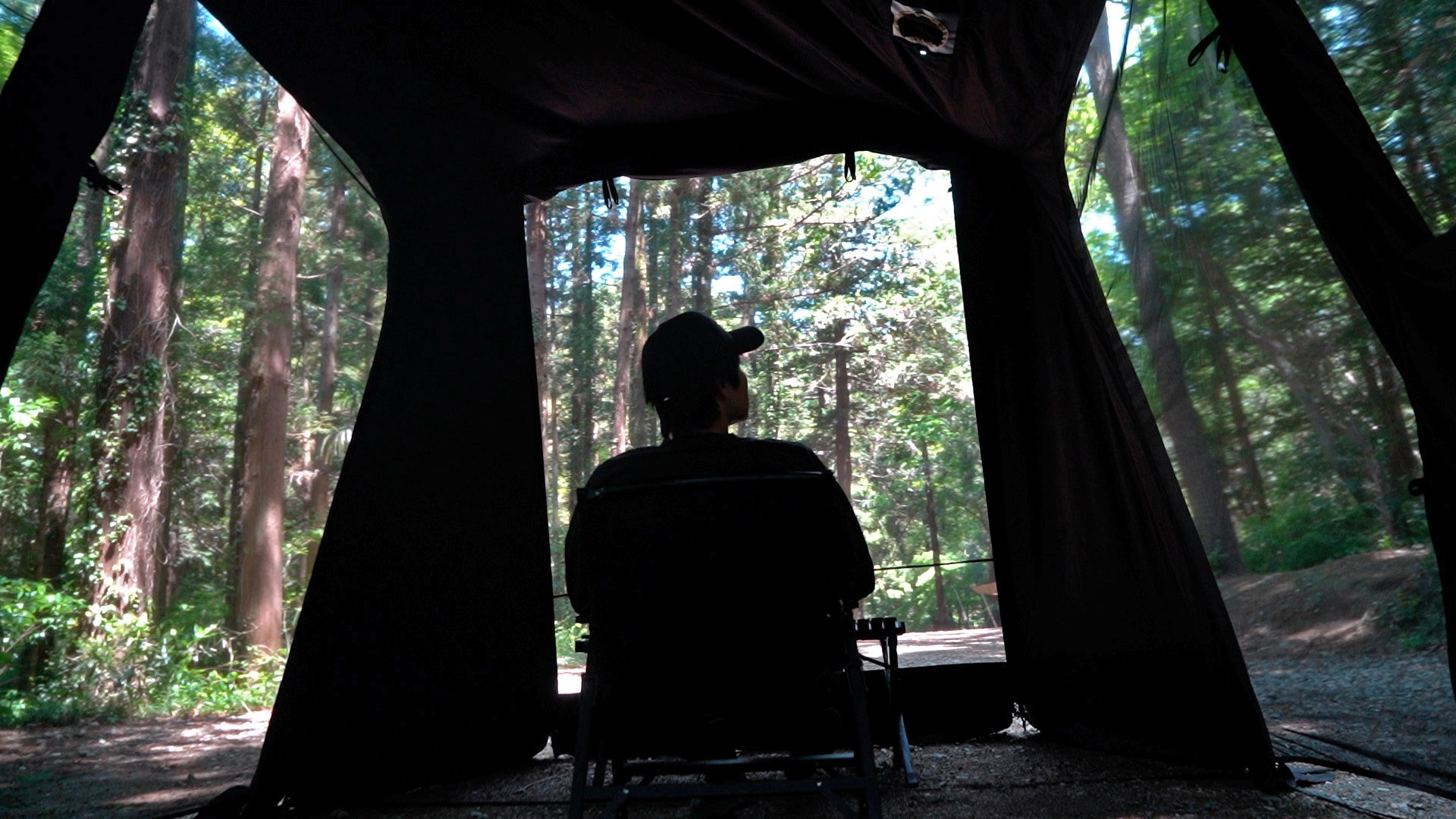 シェルターとして使えば、ソロキャンプでもファミリーキャンプでも使えるちょうどいいサイズ感。
