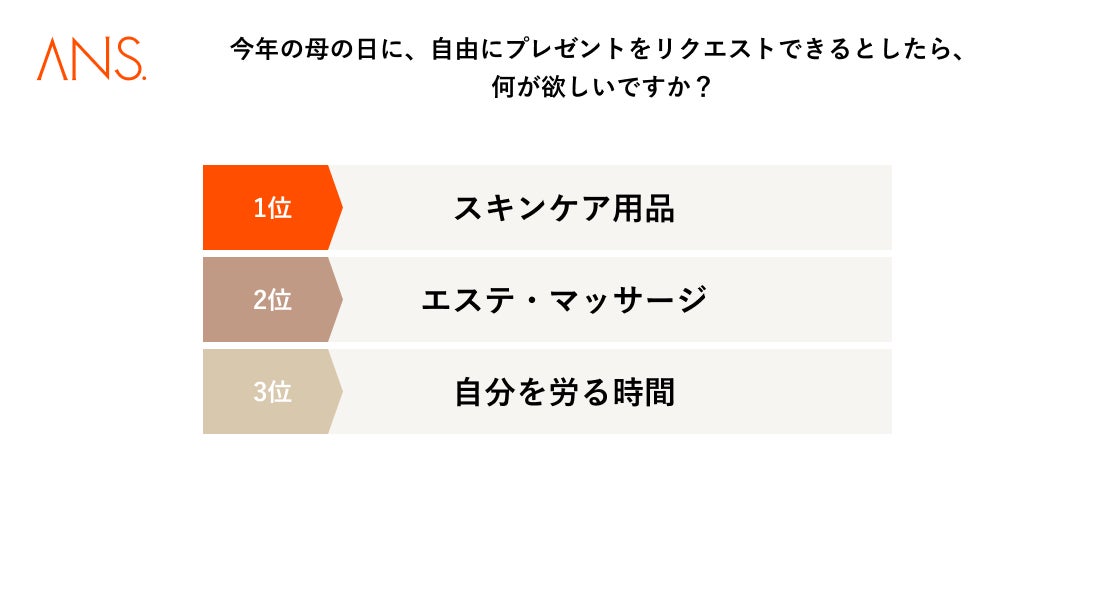 ANS.が実施した「母の日に関する調査」で、現代のママたちは“自分を労る時間”の大切さを感じながらも、十分に確保できていない実態が明らかになりました。また、スキンケアやリラックスタイムなど、美容を通じた“ご褒美習慣”への関心の高まりも見受けられました。