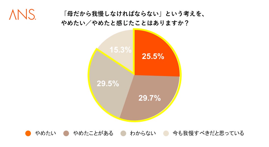 母になると、何かを諦めたり我慢したりする機会が増え、「母だから我慢しなければ」という意識が自然と根付いている人も多いと推察されます。