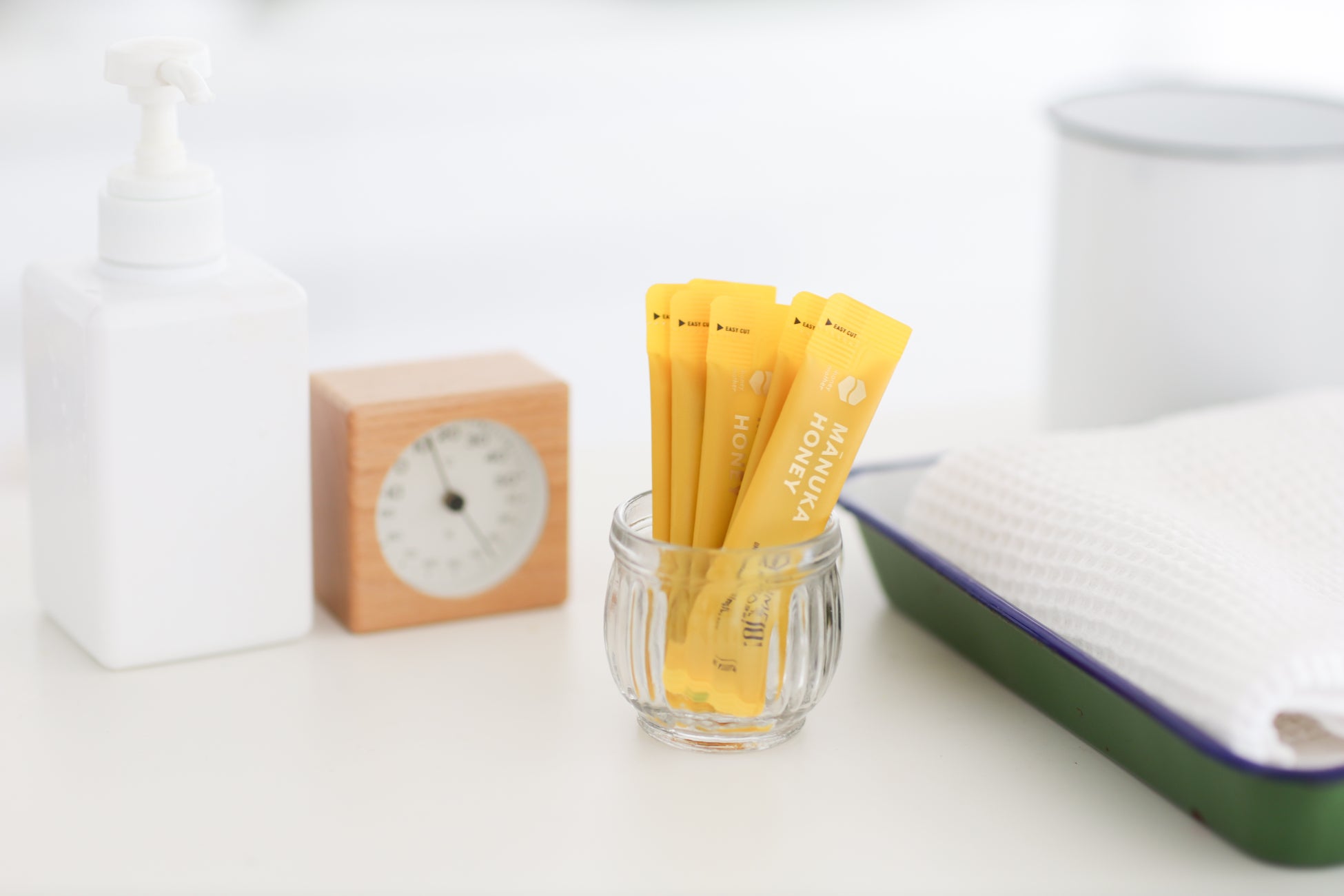 洗面所に置いて、帰宅後の「手洗い・うがい」に、マヌカハニーをプラス。スティック個包装タイプなら手間いらずだから、お子さまも楽しみながら健康習慣が継続できます。