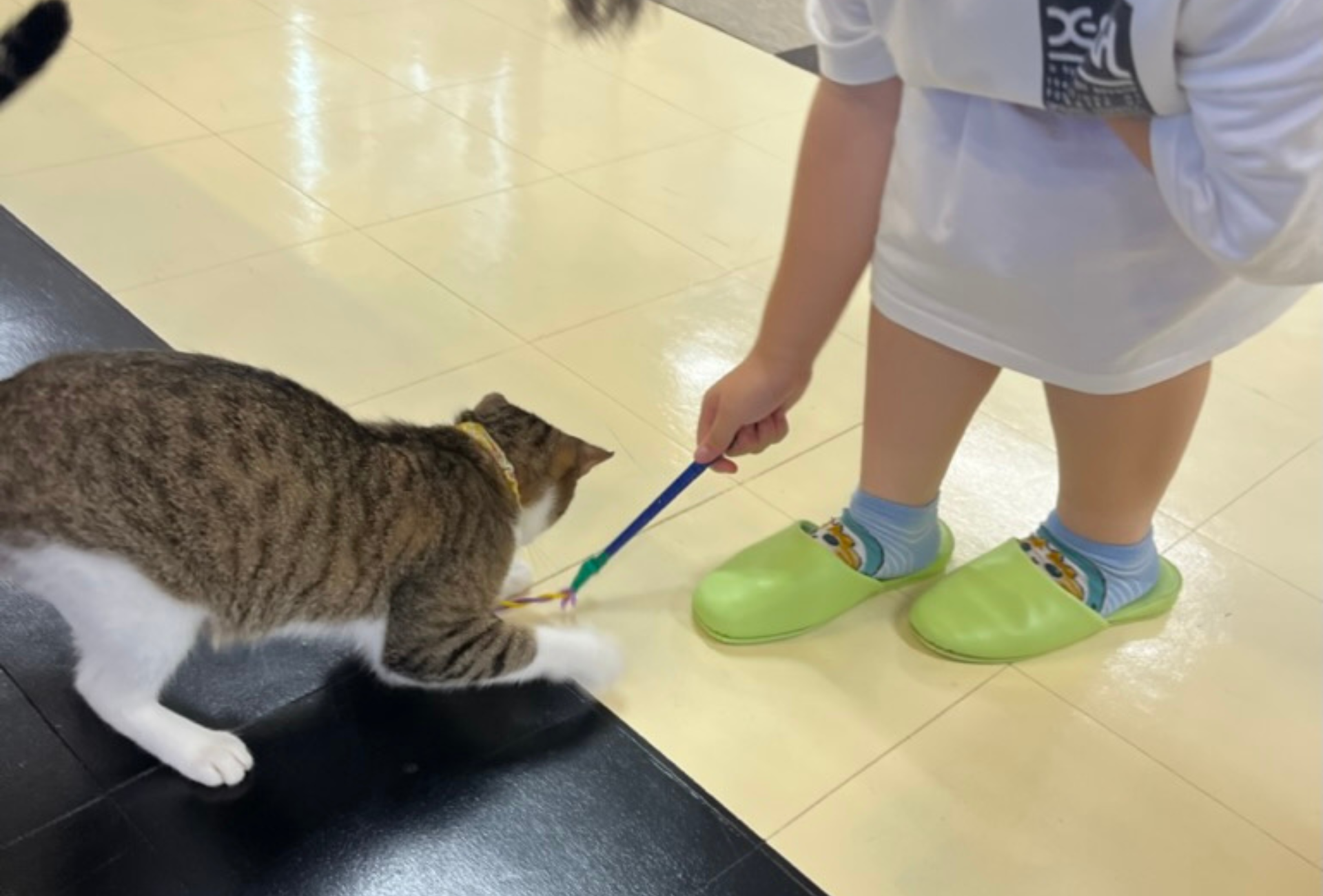 日頃は猫カフェとして、猫と戯れて楽しむのがメインのサービスですが、実際にチェキを撮ってデコレーションしたり、猫のおもちゃを作ってその場で猫と遊ぶという体験型のサービスを提供でき、お客様もとても楽しい時間を過ごされていらっしゃいました。夏休みの良い思い出になったという声もいただいております。