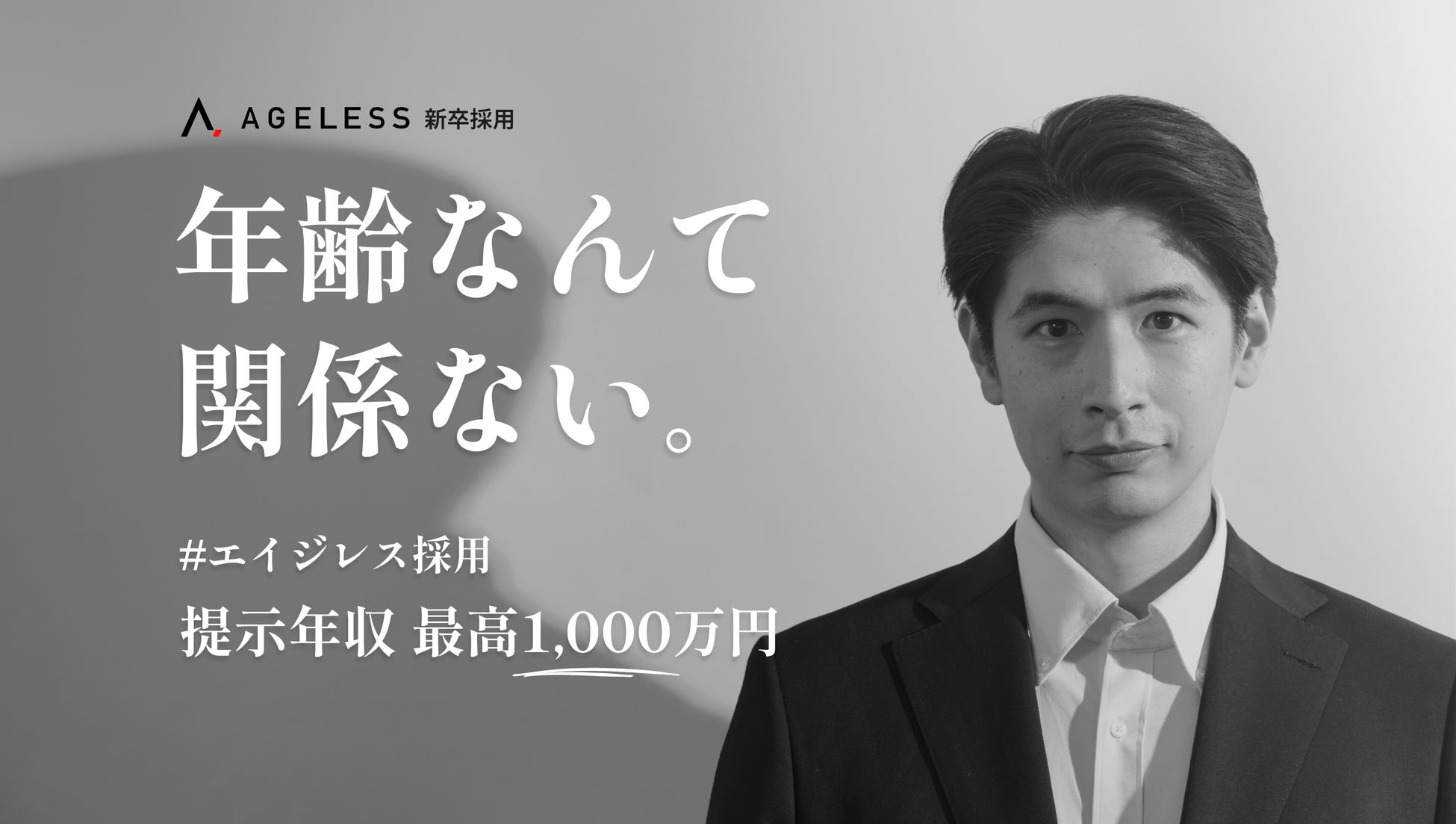 株式会社エイジレス(本社:品川区、代表取締役:小出 孝雄、以下当社)は、2026年4月以降入社の新卒を対象に年齢・学歴・肩書に縛られない新卒採用制度「エイジレス採用」を開始します。“年齢によるしがらみをなくす”という当社ミッションを自社組織でも体現し、新卒の提示年収レンジを375〜1,000万円に設定。年齢に関わらず、成果とポテンシャルを評価する仕組みを整備します。