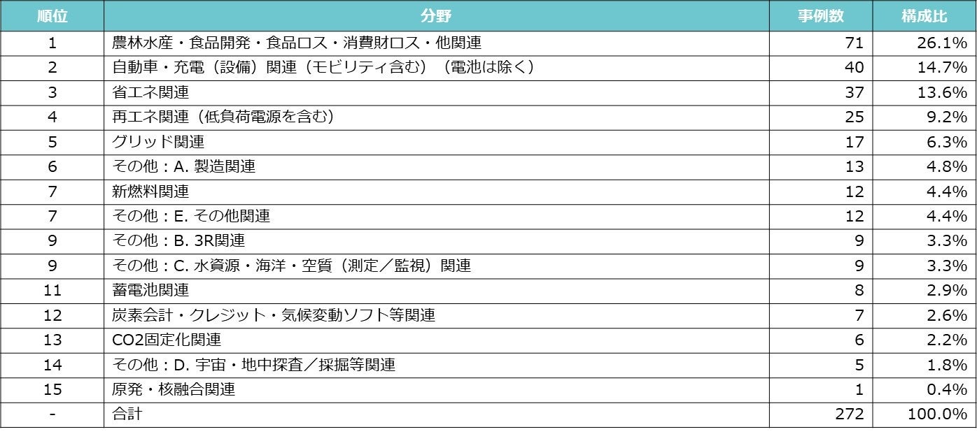 ~ 農林水産、自動車・充電、エネルギー関連が上位 ~