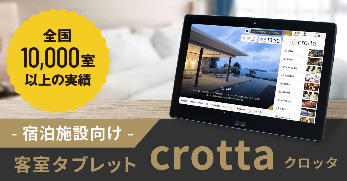 展示ブースでは、客室タブレット「crotta」、客室スマートテレビ「corttaTV」、スマホコンシェルジュ「crottaスマホ」といった業務効率化、インバウンド対応、売上向上等に寄与するITツール「crotta シリーズ」を展示。PMS連携で可能となる決済・清掃ステータスのデモ画面もご用意させて頂きます。