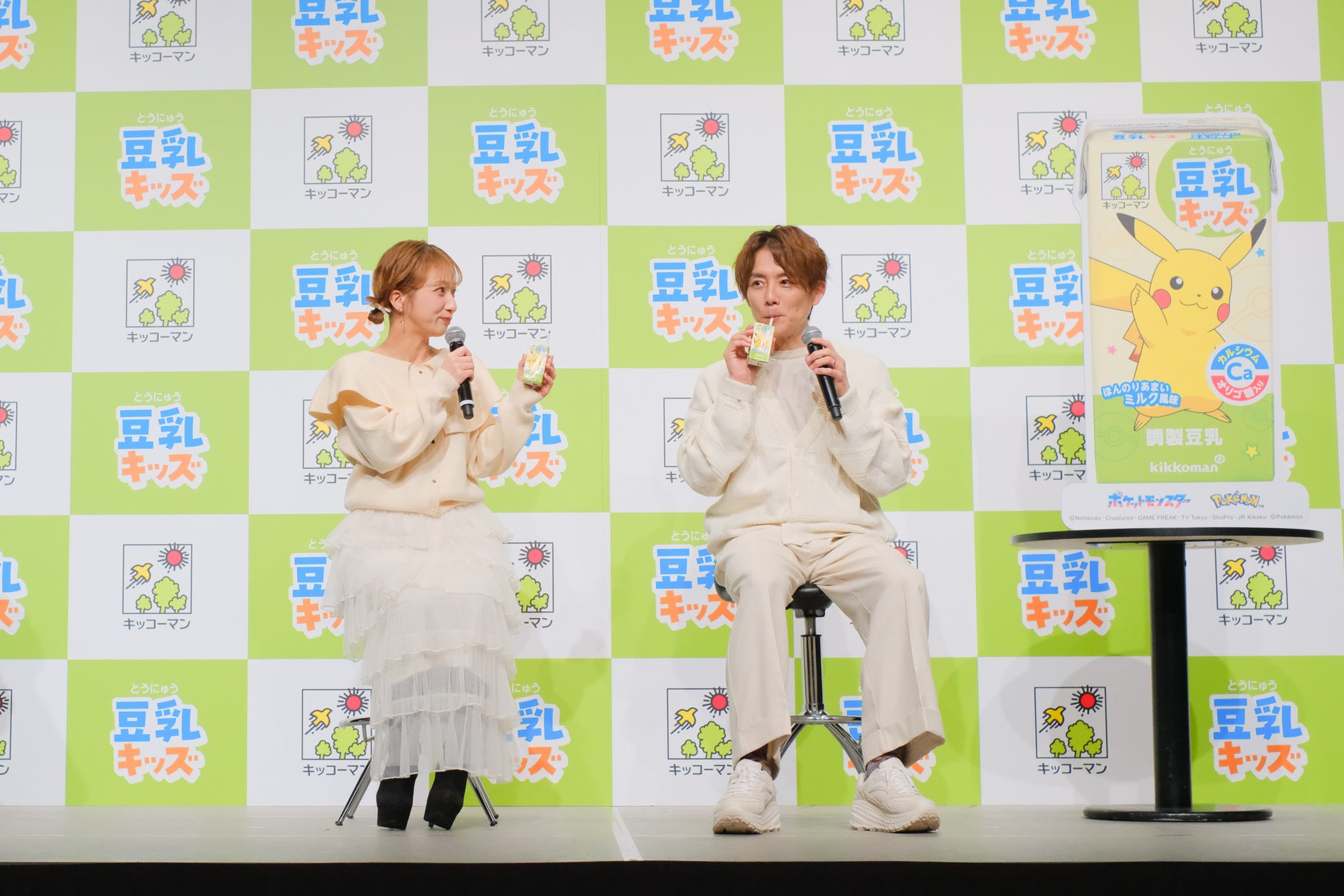 実際に子どもの声を取り入れた味わい・パッケージについても言及し、「子どもの声で完成した、調製豆乳よりやや甘めの子どもが飲みやすい、やさしいあまみに仕上げた。さらに、5~6歳の子どもたちに大人気のポケットモンスターシリーズのピカチュウのデザインを採用し、子どもが自分から手に取りやすく、毎日楽しく飲むことができるパッケージを目指した」パッケージへのこだわりを語りました。