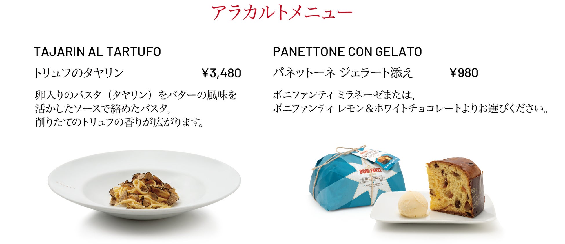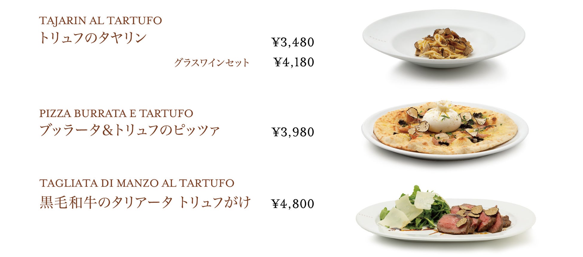 イタリアの冬を代表する食材、トリュフの芳醇な香りを堪能できるメニュー。