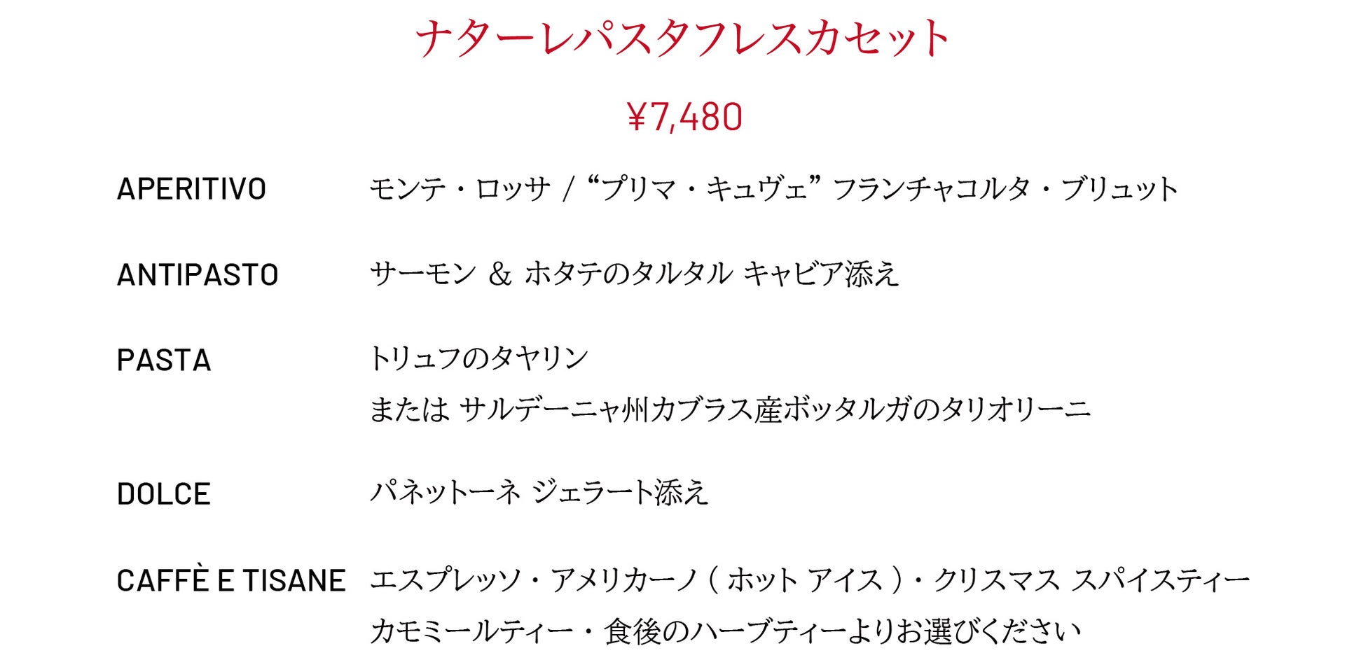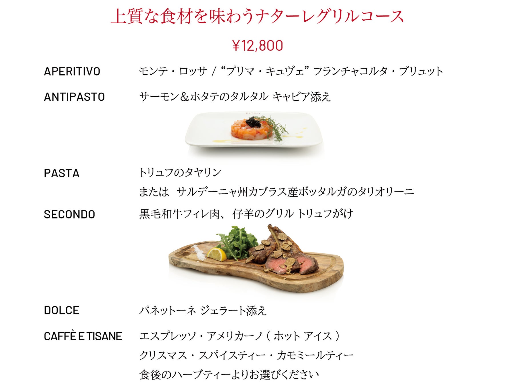 イータリー・アジア・パシフィック株式会社(本社:東京都千代田区、代表取締役社長 西条 真義)が運営するイータリーでは、伝統的なイタリアの食文化を贅沢に楽しめるクリスマス限定のナターレコースを提供します