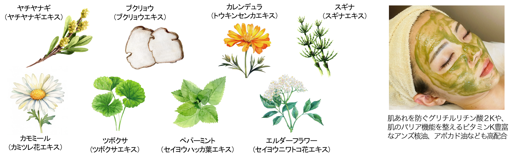 古くから人びとの健康に寄り添ってきたハーブの力を、まっすぐ肌へ。乾燥やハリ不足、肌あれなど、さまざまな肌悩みに働きかけるハーブを厳選。エイジングケア※2に注目の稀少植物ヤチヤナギやカレンデュラ、カモミールなど、自社で抽出した8種の濃密なハーバルエキスを緻密に組む独自処方で、肌にうるおいとハリを与え、透明感※3 に満ちたすこやかな肌へ導きます。