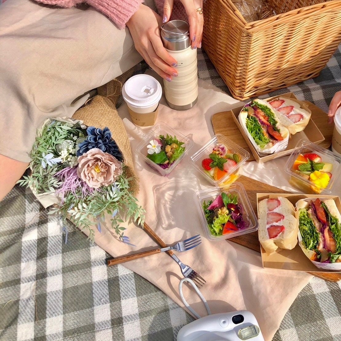 また、特別な時間をお楽しみいただけるよう、ラタン籠にはピクニックセットに加え、インスタ映えするブーケなどの小物もご用意しています。公園や河川敷など、お好きな場所でピクニックタイムをお楽しみください♪