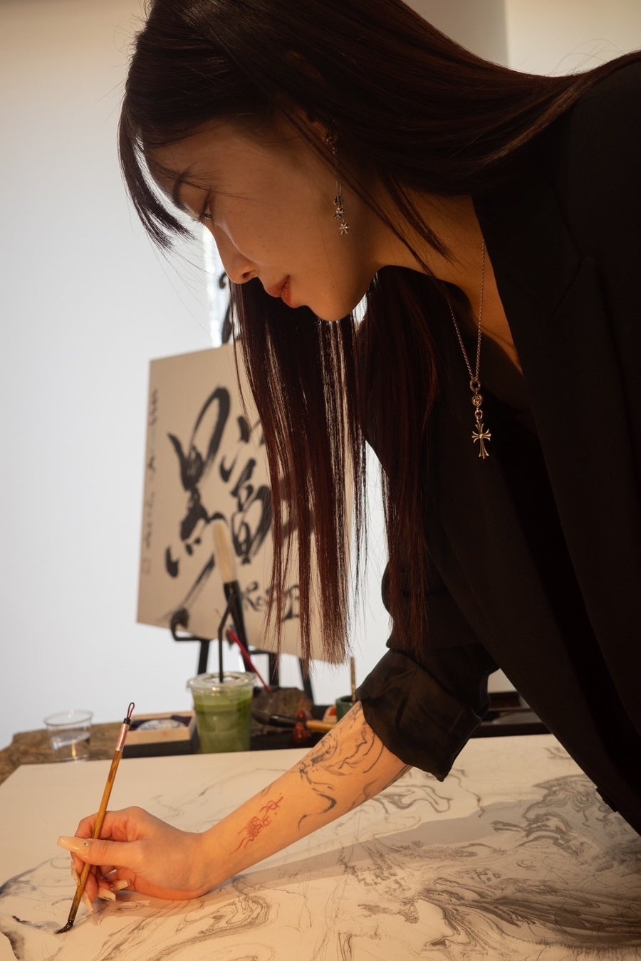 流動性をテーマに作品を披露したその作品は、俵屋宗達さんがはじめに使った技法とされる“たらし込み”で描かれる富士山にはどこか、日本文化を越える力強さを感じられる。