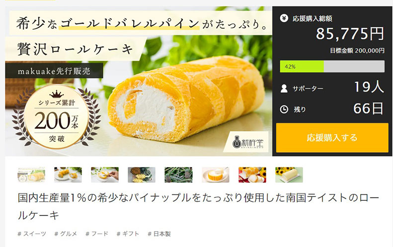 株式会社新杵堂(代表取締役社長 田口美保子、以下「新杵堂」という)は、新杵堂グループ会社である株式会社沖縄新杵堂(※2)を通じて沖縄産最高級パイナップルであるゴールドバレルを贅沢使用した高級ロールケーキの応援販売をマクアケ(※1)にて開始いたしました。