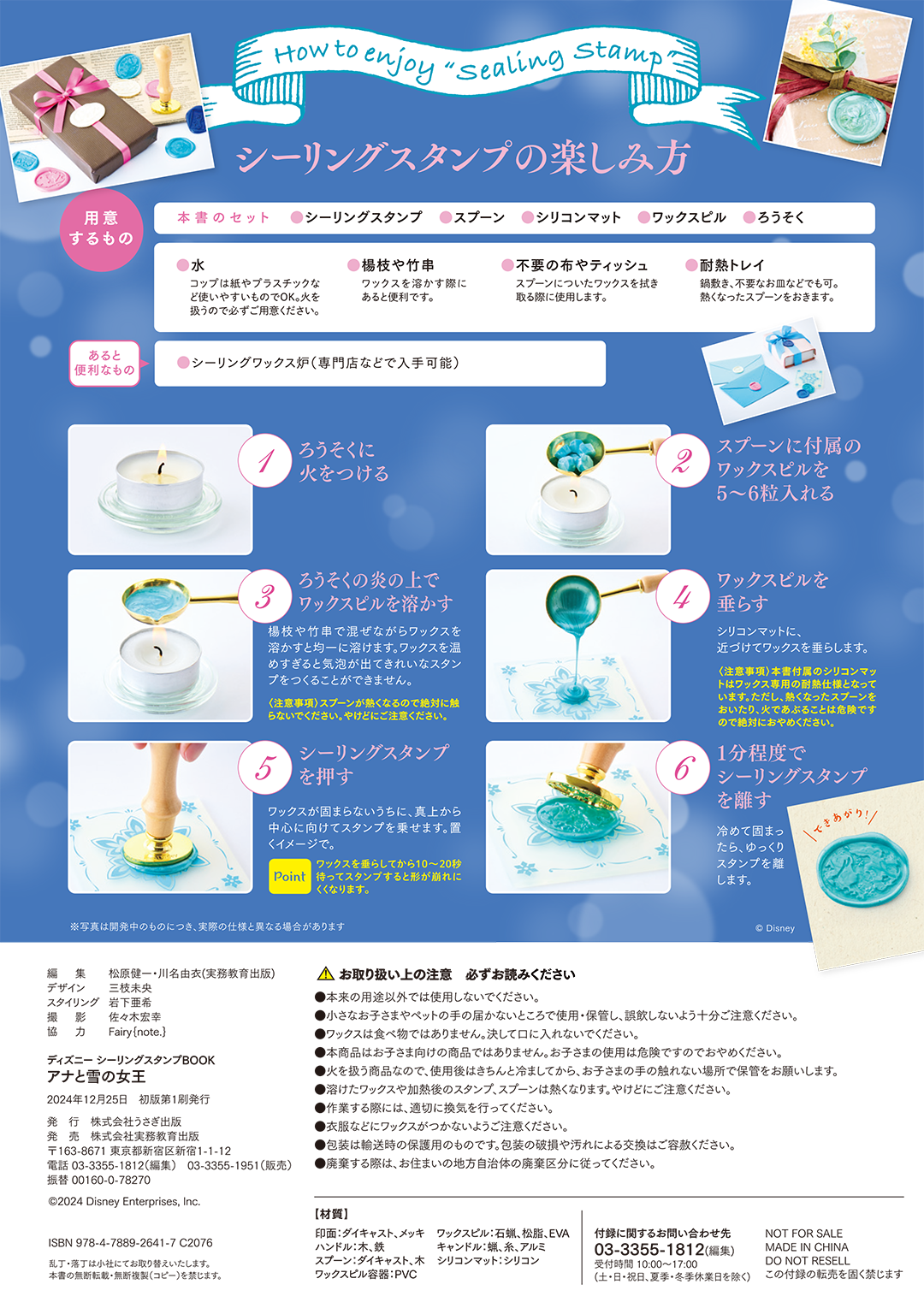 シーリングスタンプはちょっと難しそう、準備するのが大変そう…、そんなイメージをお持ちの方も『アナと雪の女王』の世界観あふれる本書なら、楽しくシーリングスタンプの世界へ一歩を踏み出せます。