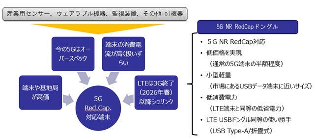 現在開発を進めております5G RedCap対応USBドングルは、LTE 4Gと5Gの“すき間”を埋めるべく開発された新たなカテゴリの5G通信規格に対応する製品です。