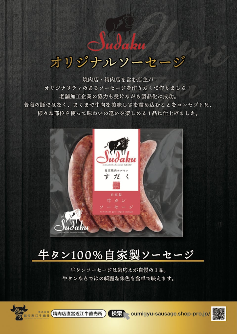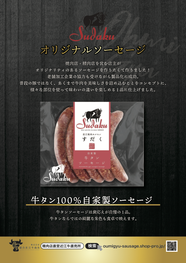 - 焼肉すだくでは名物「牛100%ソーセージ」を提供