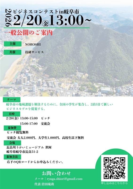 学生たちのリアルな挑戦と、岐阜の未来を切り拓くアイデアが生まれる瞬間を、ぜひ会場でご覧ください。