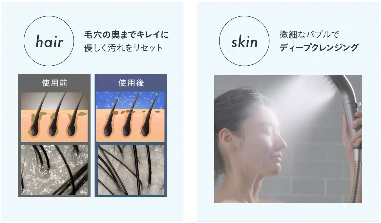 最大76億個の微細なオーガニックファインバブル×99%塩素除去で、肌・髪への負担を軽減しつつ、毛穴汚れをすっきり優しく洗浄 洗浄力・塩素除去・高水圧・節水を実現した革新的シャワーヘッド