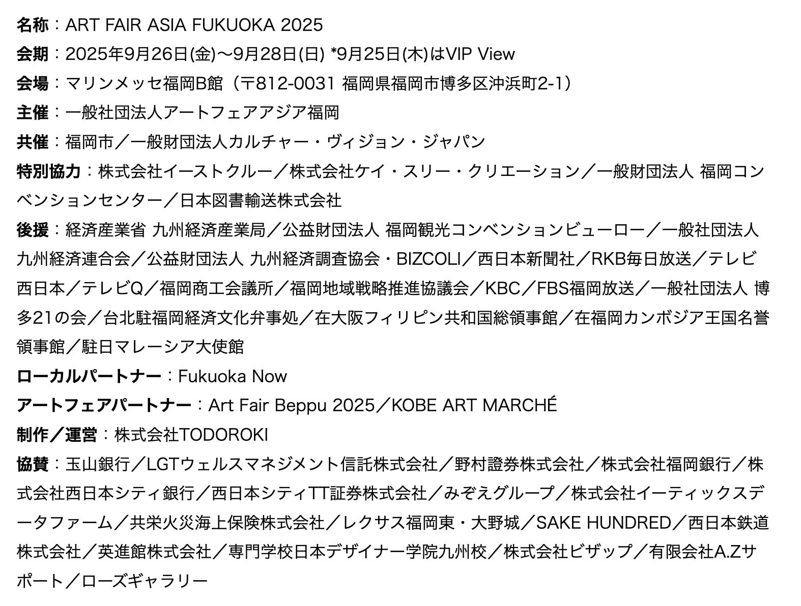 是非、多くの方にフェアや展示会場にお越しいただき、世界の現代アートに出会っていただくとともに、福岡で数々の交流が図られることを期待しています。