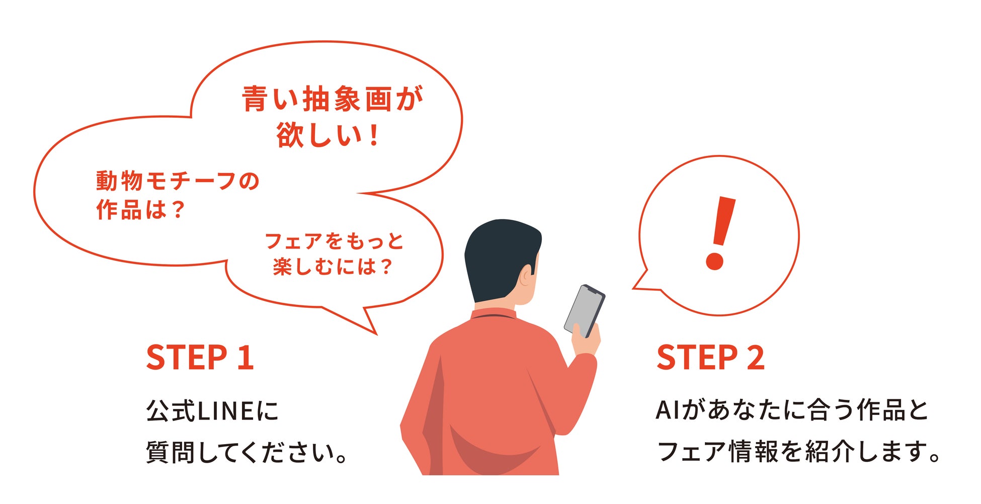 公式LINEを通じてAIに話しかけると、好みに合わせた作品の提案や会場情報の案内など、まるで専属コンシェルジュのようにサポートします。