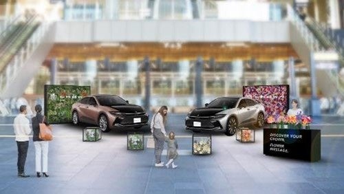 フラワーアートで表現。会場ではアンケートにご回答いただいた方にお花をプレゼントいたします。車両はCROSSOVER G “Advanced・Leather Package”に加え、TOKYO OUTDOOR SHOW2023で出展した「CROWN OUTDOOR CONCEPT」も展示いたします。