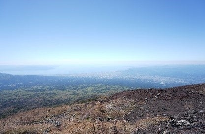 六合目まで登ると、天気の良い日には伊豆半島や駿河湾、箱根連山などが一望できます。絶景をあとに、宝永火口を目指して下りはじめます。
