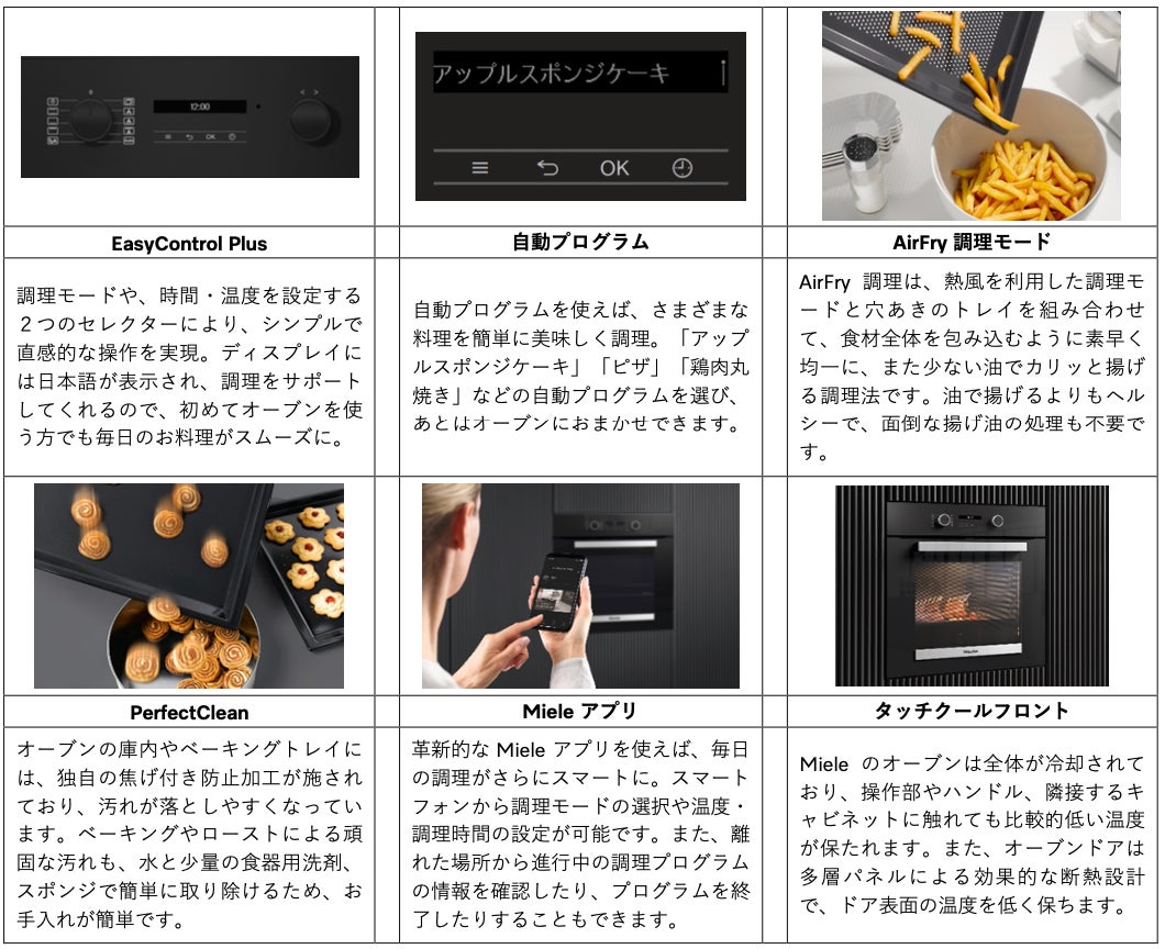 ■Mieleビルトインオーブン「H 2465 B」|主な機能