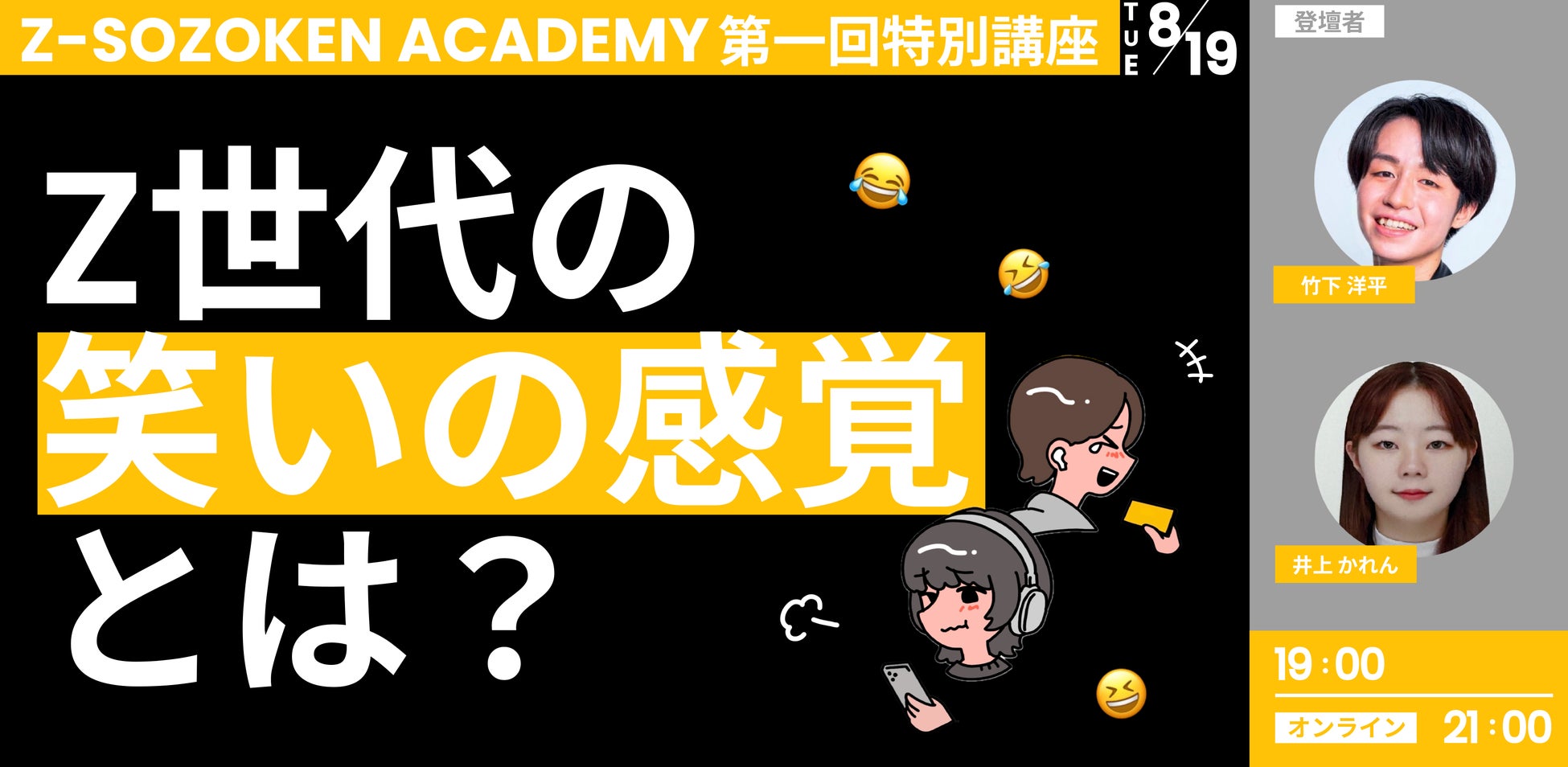 2025年8月19日に行われる「Z-SOZOKEN ACADEMY 第一回特別講座」のテーマは、「Z世代の笑いの感覚」について。