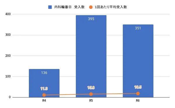 以前は輪番日に勤務する医師が救急対応、入院指示、病棟管理まで1人で対応していたが、現在は業務を分担でき、負担が大幅に軽減しました。Dr.'s Prime導入後の医師の応需率は100%を維持しており、内科輪番日の受け入れ・入院数も回復傾向にあり、病院経営にも良い影響を与えています。