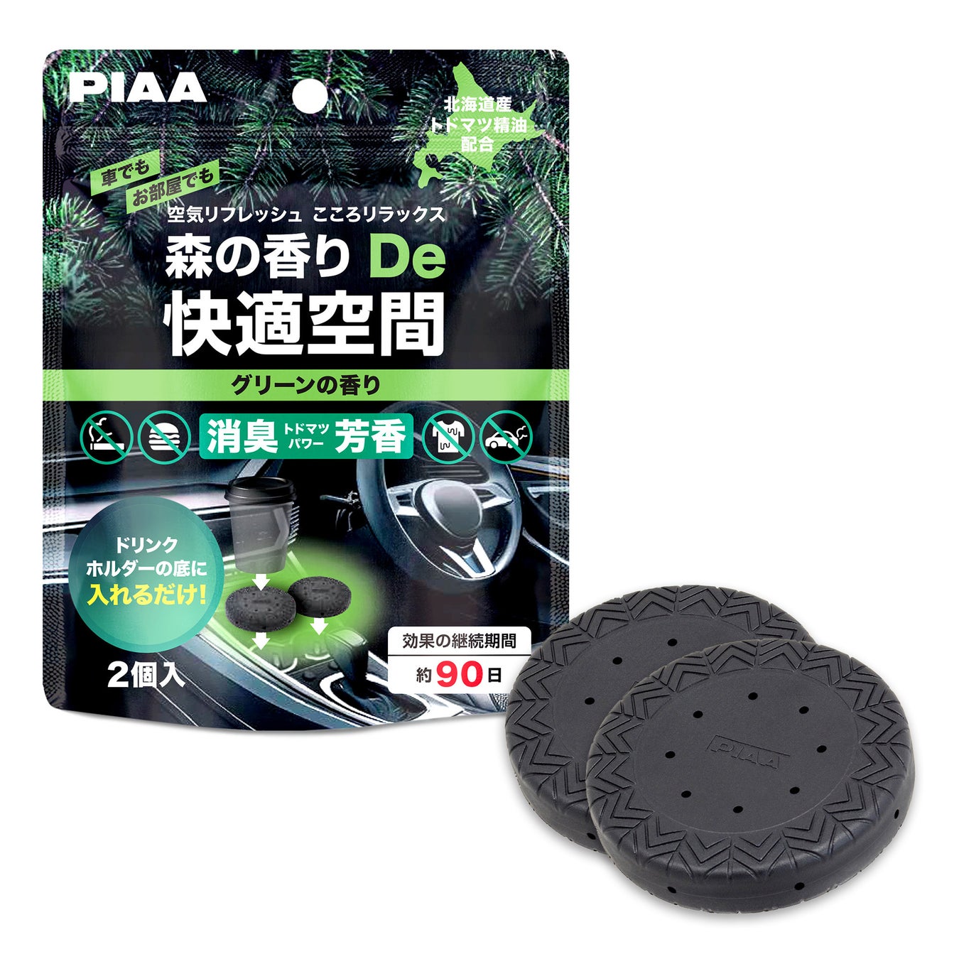 [新登場] 空気リフレッシュ こころリラックス 車のドリンクホルダーの底に入れるだけの消臭・芳香剤 【PIAA 森の香りDe快適空間】