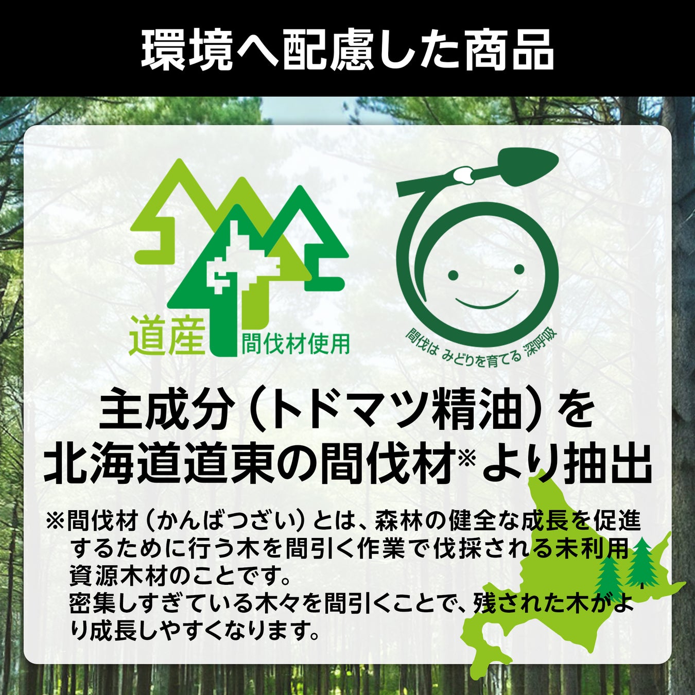 ●空気のきれいな北海道道東のトドマツの森から伐採された間伐材で作られた樹木精油を使用